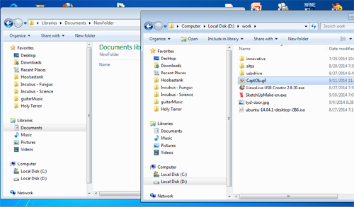 Right click on that same Windows Explorer icon as before and open a new Explorer window. In that window, navigate your drive to where you downloaded that graphic. Once you find that, slide the window over so that both of the Explorer windows are visible.