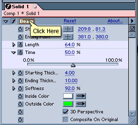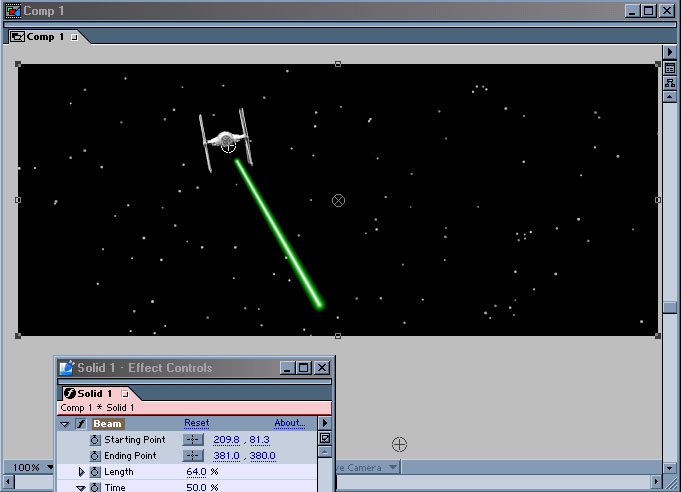 Now we need to make it look like the beam is coming from the Tie Fighter. In the Effects Dialog, click on the Beam Effect, like this: